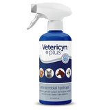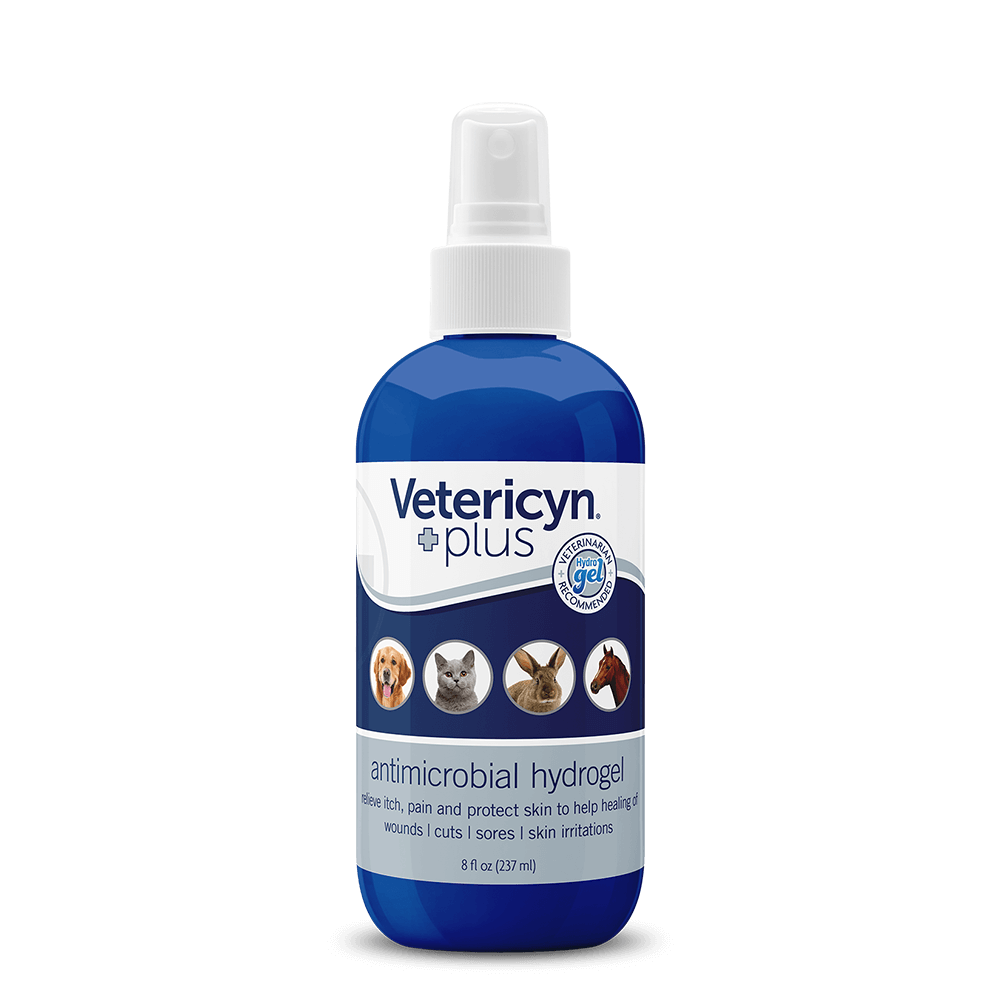 Vetericyn Plus® Antimicrobial Hydrogel is designed to adhere to the site of application, creating a barrier for the wound. The gel sprays in a fine mist and gels on contact to cling to the site and immediately provide soothing relief and protection. The hydrogel provides the optimized moisture (not too wet or too dry) to maximize the wound healing environment while helping to keep dirt and debris out of the area. Vetericyn Plus® Antimicrobial Hydrogel will not cause dermal irritation and is safe for use in sensitive areas. For best results, we recommend flushing and cleansing the wound with Vetericyn Plus® Wound and Skin Care liquid prior to applying the hydrogel.