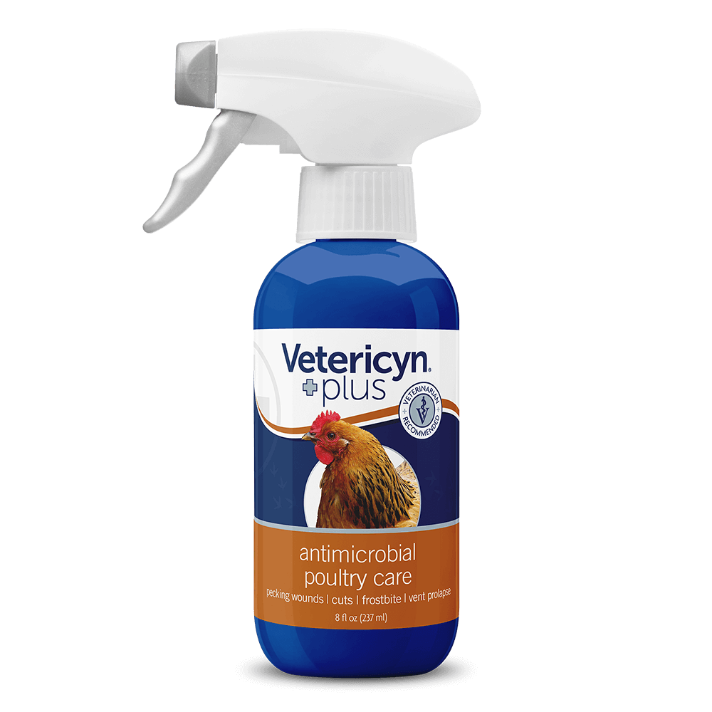 Jumpstart the healing of pecking sores or scratches at the first sign of injury with Vetericyn Plus® Poultry Care. Our Poultry Care is non-toxic, antibiotic free, and safe for adult birds and hatchlings alike. The spray nozzle makes it easy to reach under and in between feathers to thoroughly flush and clean wounds to speed up healing time and help prevent infection. Protect your flock with Vetericyn Plus® Poultry Care.