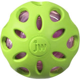 Our JW® Crackle Heads® Crackle Ball is great for toss and fetch games. This long-lasting dog toy is fashioned with a tough outer rubber layer which provides a protective wall. The outer layer has holes so that the crunchy sound is easily heard by your pet. The crunchy ball inside is made with recyclable plastic bottle material. Provides hours of enticing interactive playtime for your dog. Ships in random fun assorted colors.