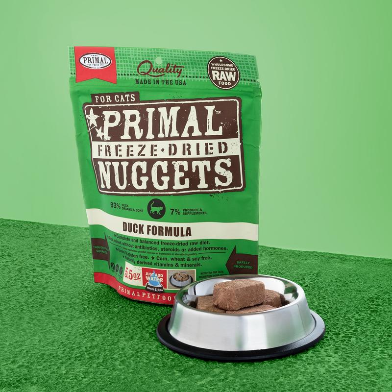 ANIMAL FEEDING TESTS USING AAFCO PROCEDURES SUBSTANTIATE THAT PRIMAL PET FOODS FELINE FREEZE-DRIED COMPLETE DUCK FORMULA PROVIDES COMPLETE AND BALANCED NUTRITION FOR ALL LIFE STAGES.