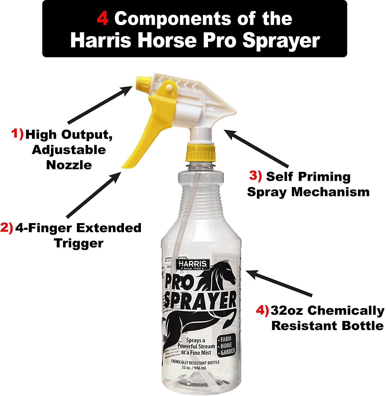 • Chemically Resistant – The heavy duty 32oz bottle is chemically resistant to hold up against harsh chemicals and won’t clog when spraying fly repellent, coat conditioners, disinfectants, leather conditioners, and other horse care products