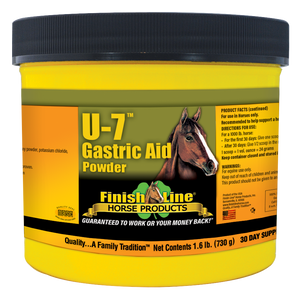 Our highly-palatable U-7™ Gastric Aid contains natural active ingredients that promote a healthy digestive tract. It helps eliminate undigested grains, maintain proper weight, reduce runny manure, increase coat quality, get rid of cinchy behavior, maintain a calm stomach and essentially keep your horse performing at its best!